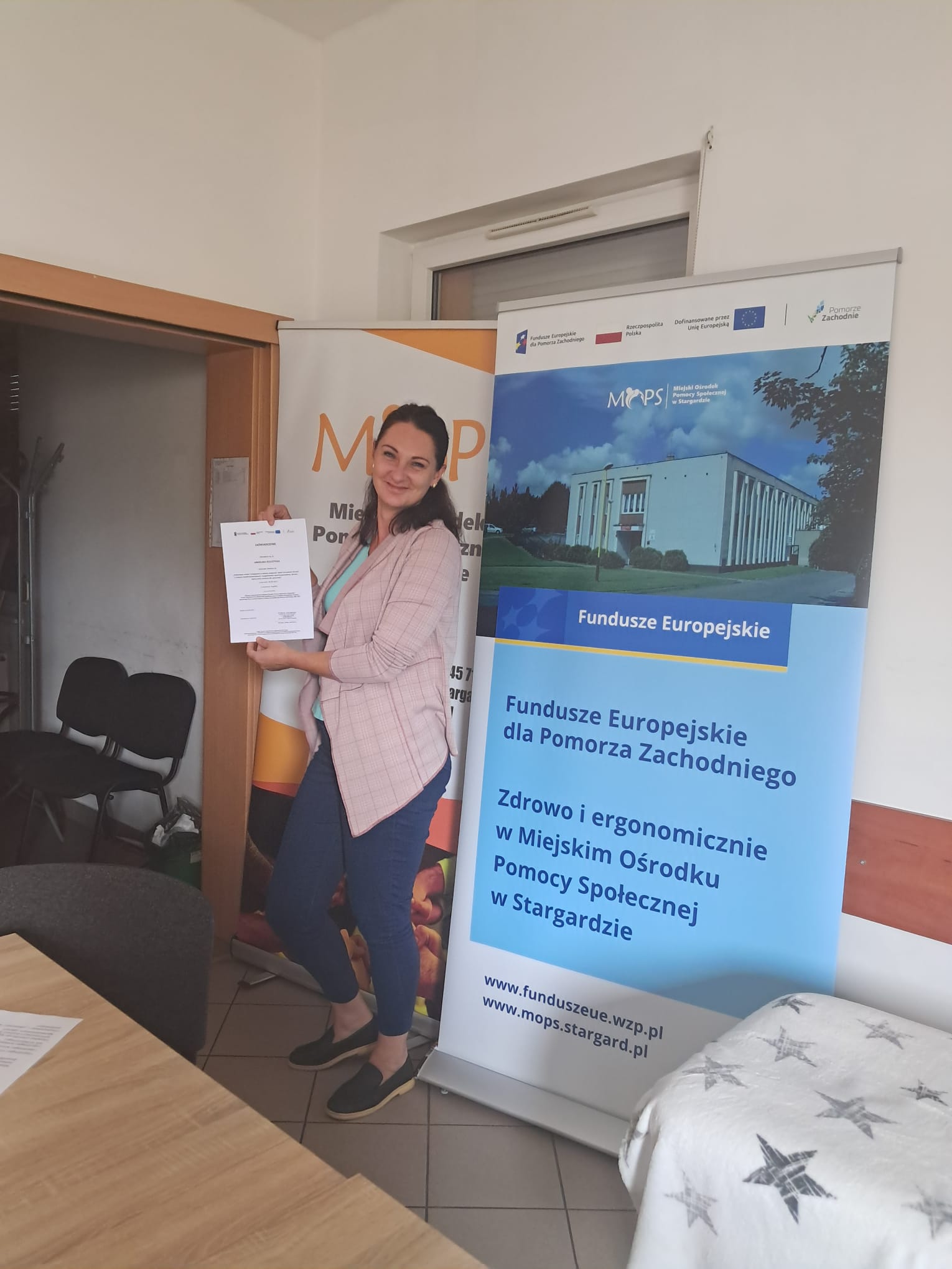 Szkolenie zorganizowano w ramach projektu „Zdrowo i ergonomicznie w Miejskim Ośrodku Pomocy Społecznej w Stargardzie” FEPZ.06.07-IP.01-0064/24-00 w ramach programu Fundusze Europejskie dla Pomorza Zachodniego 2021-2027 współfinansowanego ze środków Europejskiego Funduszu Społecznego Plus.