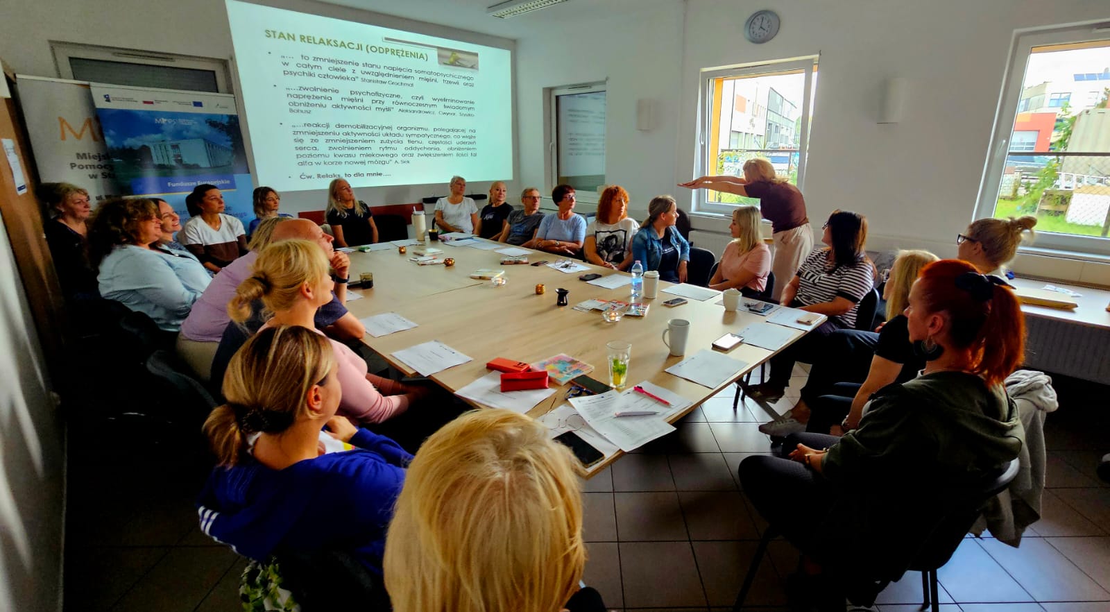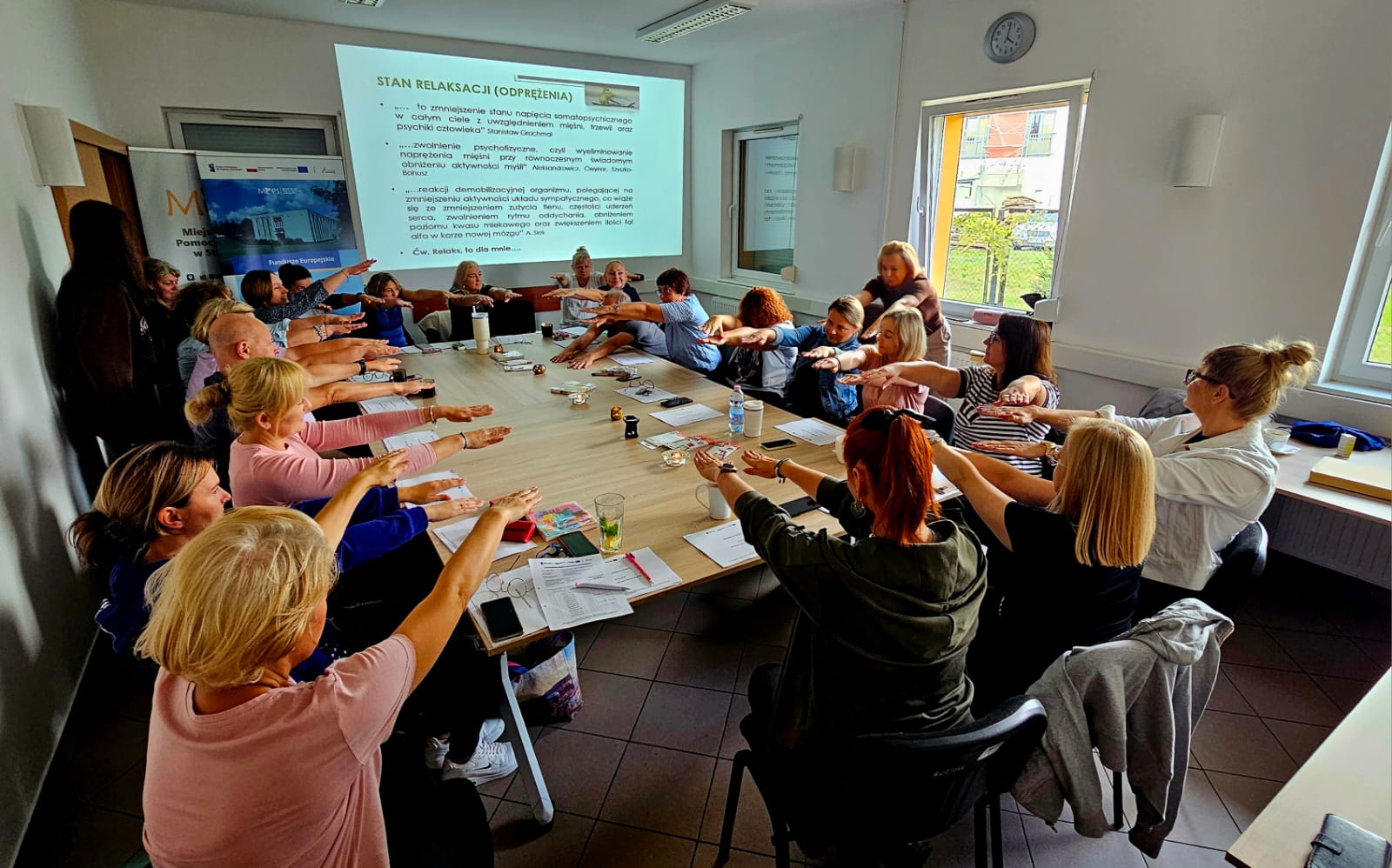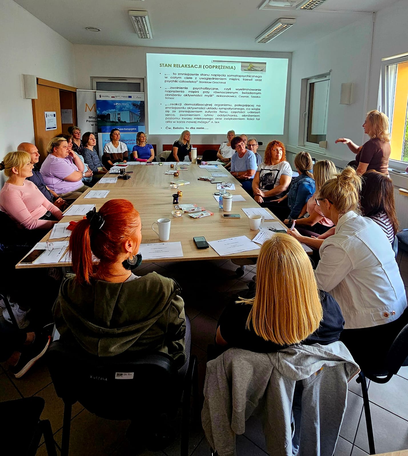 W dniach 11.09.2025 r. i 12.09.2025 r. 40 uczestników projektu „Zdrowo i ergonomicznie w Miejskim Ośrodku Pomocy Społecznej w Stargardzie" podczas zorganizowanych w dwóch grupach czterogodzinnych szkoleń miało możliwość poznania technik relaksacyjnych, bardzo przydatnych w sytuacjach stresowych i trudnych - nie tylko w czasie wykonywania obowiązków służbowych ale również w życiu codziennym.