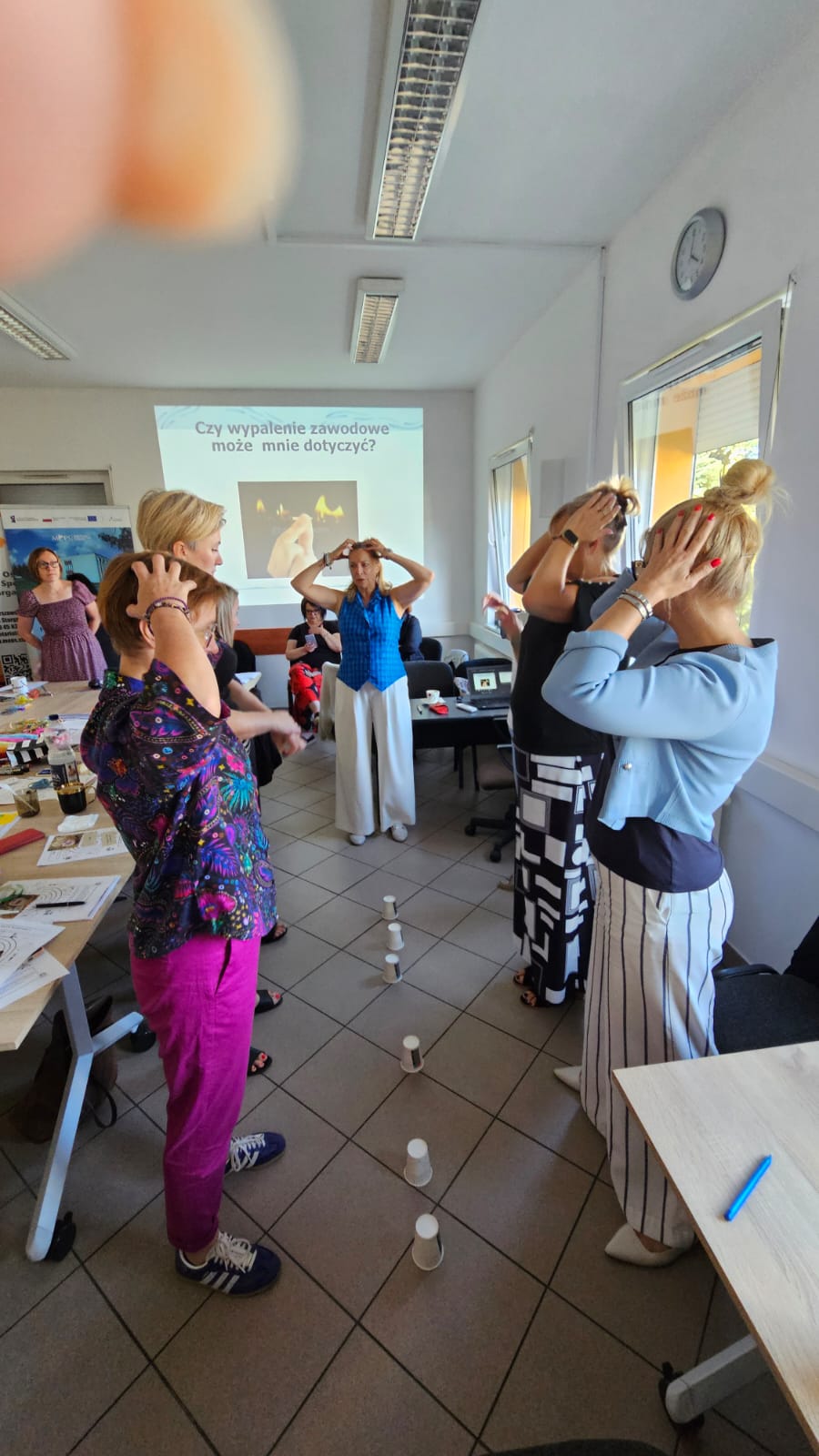 W kolejnym szkoleniu dotyczącym skutecznych strategii walki z wypaleniem zawodowym zorganizowanym w ramach realizacji projektu w dniach 03-04.09.2025 r. uczestniczyło 21 uczestników. Pracownicy Ośrodka podczas warsztatów pogłębili swoją wiedzę w zakresie wypalenia zawodowego, głównych czynników mu sprzyjających, jak rozpoznawać pierwsze sygnały wypalenia i poznali jego symptomy oraz etapy. Mogli przeprowadzić autodiagnozę w tym zakresie i dowiedzieli się jakie niebezpieczeństwo zdrowotne się za tym kryje oraz jak przeciwdziałać wypaleniu zawodowemu, walczyć z chronicznym zmęczeniem i co służy regeneracji sił i motywacji do działania.