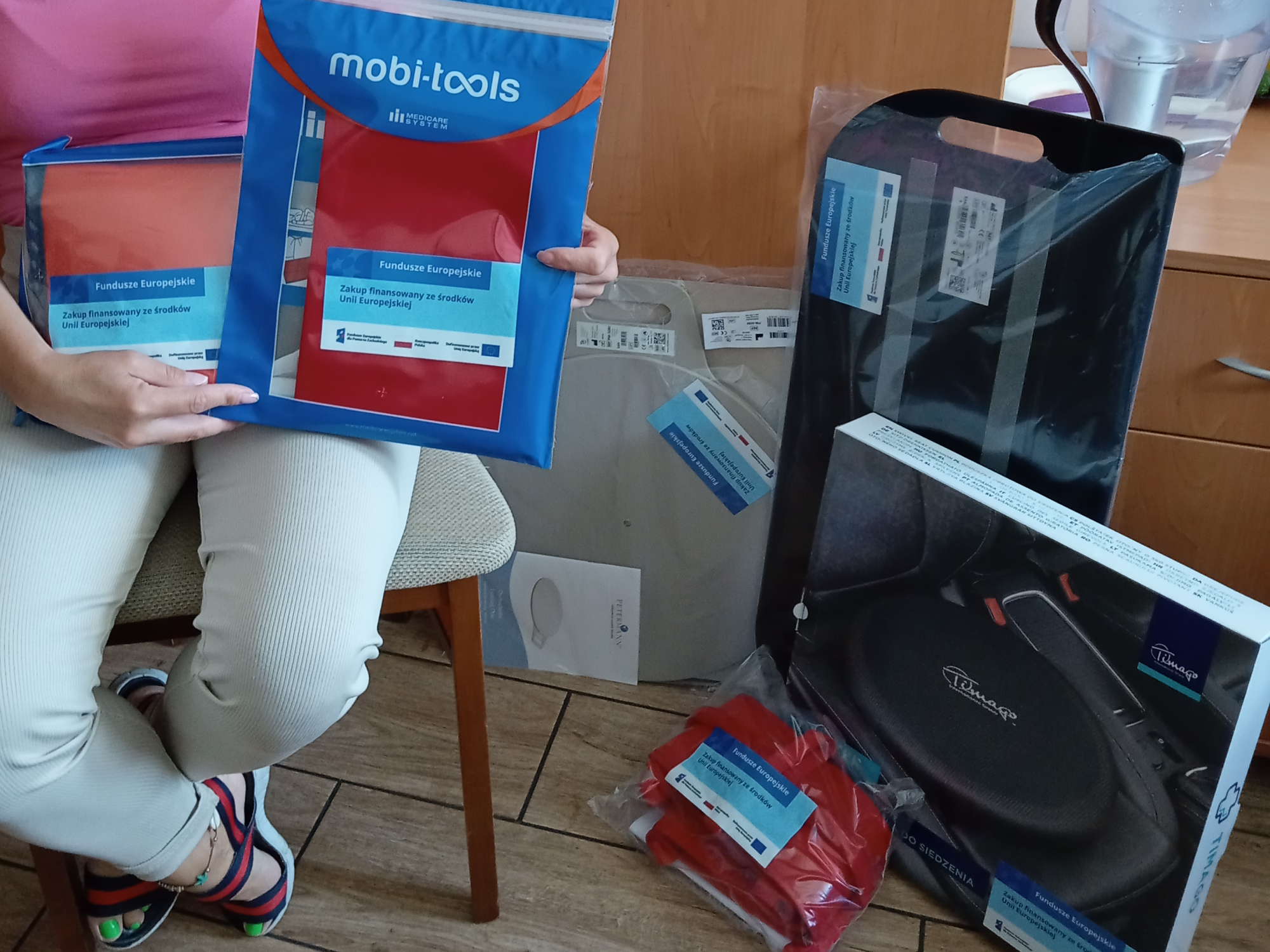 W ramach przedsięwzięcia zrealizowano zakup nowoczesnego sprzętu IT oraz ergonomicznych mebli biurowych, co pozwoliło na poprawę organizacji pracy i komfortu na stanowiskach biurowych. Opiekunki otrzymały natomiast sprzęty służące do bezpiecznego wykonywania przez nie czynności wobec niepełnosprawnych podopiecznych objętych usługami opiekuńczymi. Nowe wyposażenie usprawnia obsługę mieszkańców, zwiększa efektywność pracy oraz sprzyja zachowaniu zasad ergonomii i bezpieczeństwa. Łącznie zakupiono blisko 450 sprzętów dla 98 pracowników Ośrodka,
